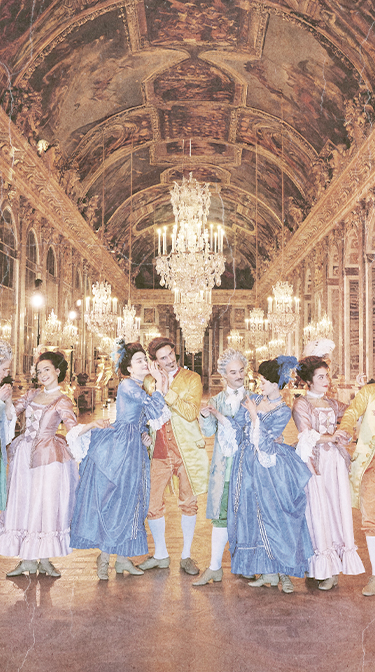 Courtiers and musicians are bustling about, preparing to welcome Marie-Antoinette, Queen of France.