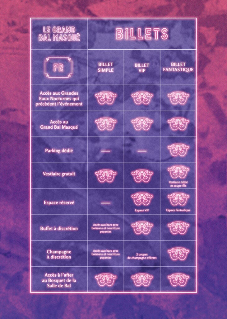 Votre billet donne accès gratuitement aux Grandes Eaux Nocturnes du samedi 27 juin 2026.